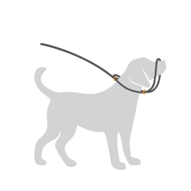 Put the second loop under the dogs chin and over nose, adjust using stopper.