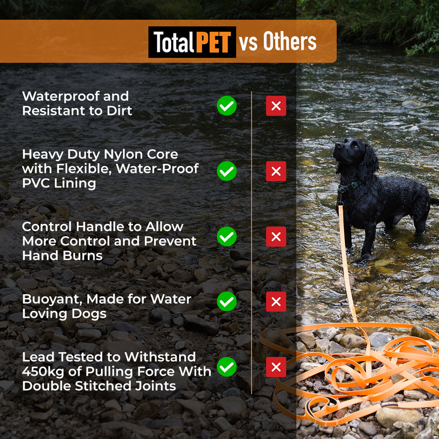 The Total Pet Waterproof Training Long Line is the ultimate tool for training your dog’s recall and obedience from a distance. Whether you're at the beach, in the woods, or working on recall in open fields, this versatile lead gives your dog room to roam while keeping you in control.